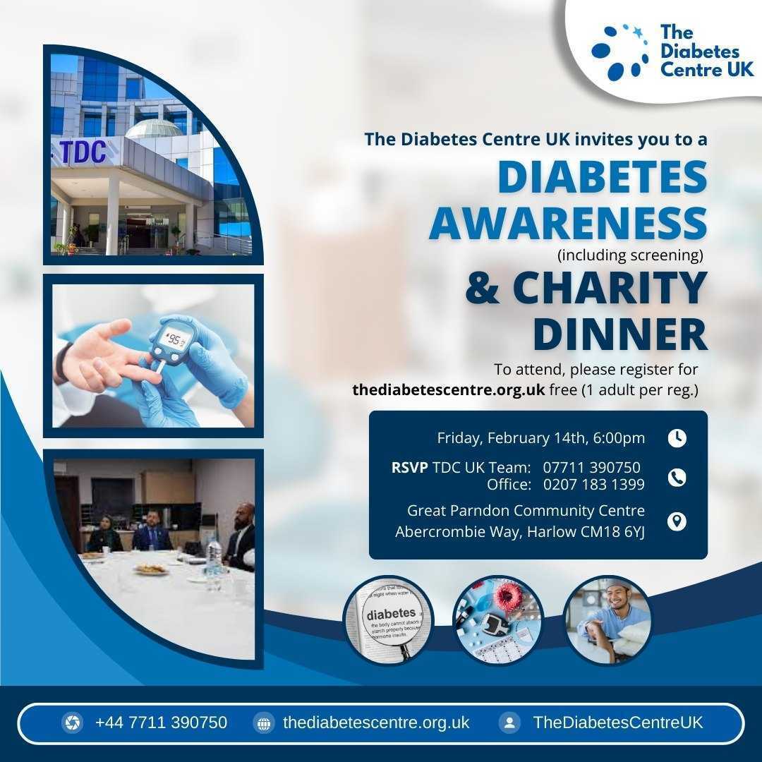 14th February 2025 - Diabetes Awareness, Screening & Charity Dinner - Harlow - Register here to attend